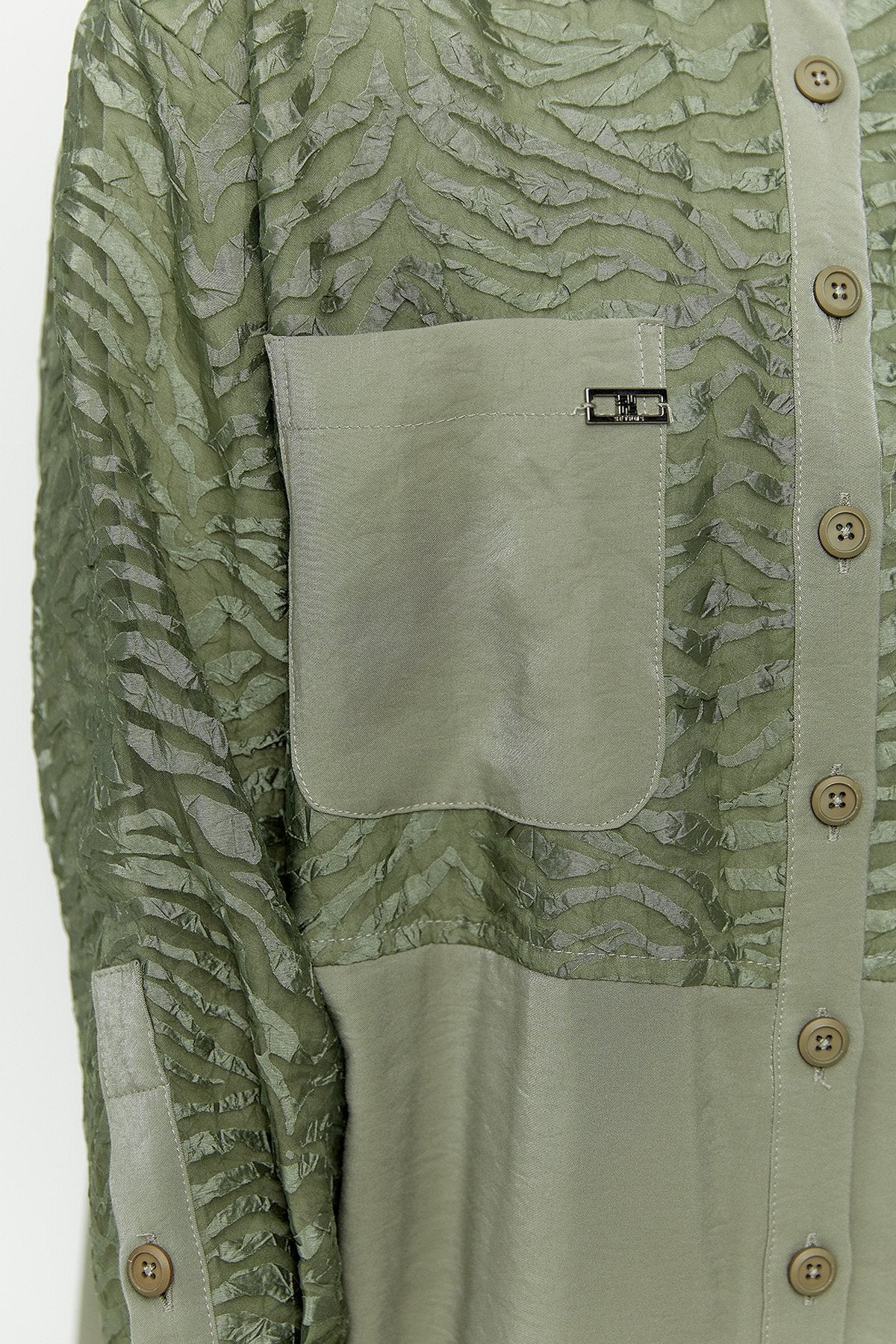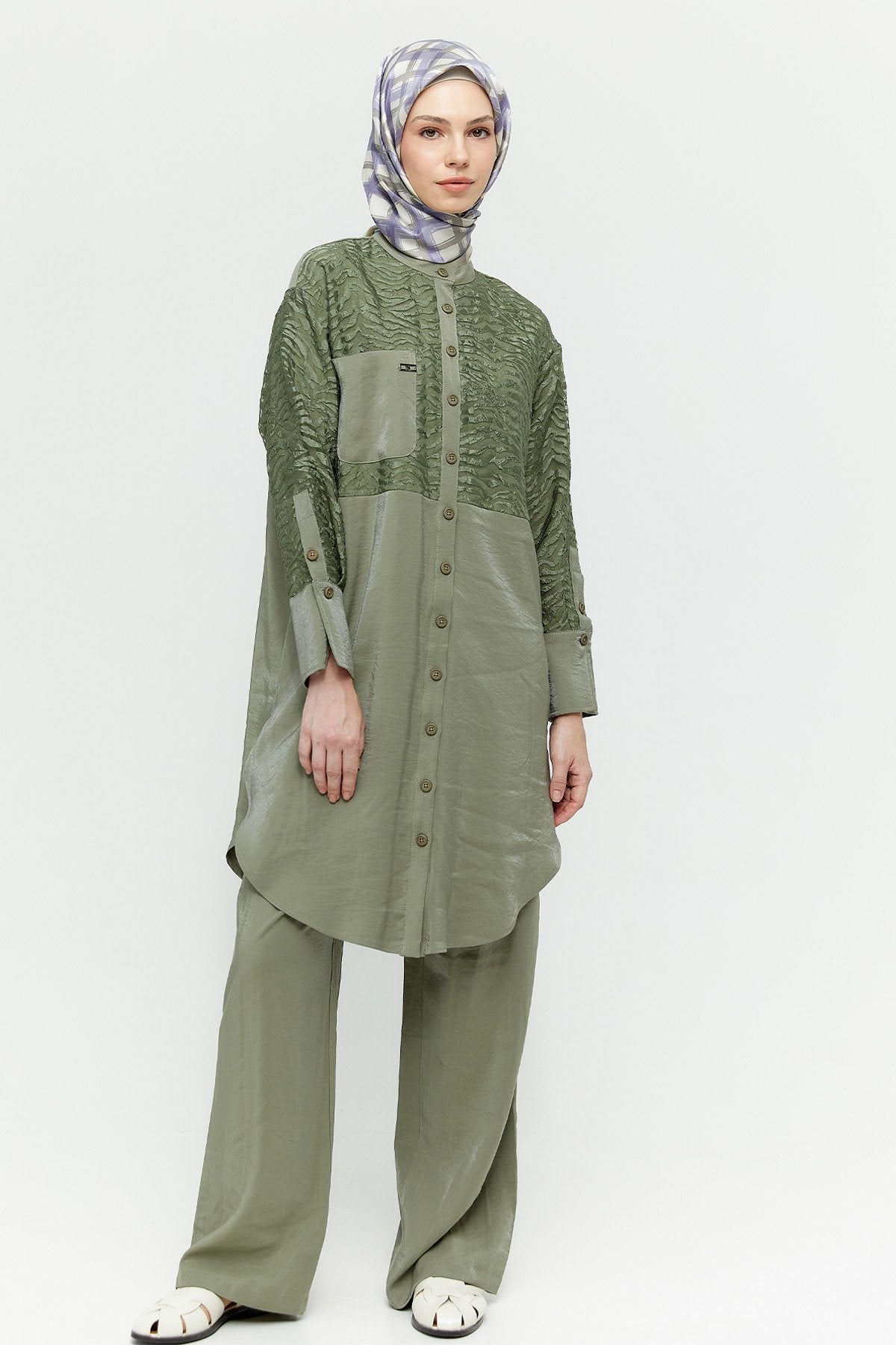 This modern and striking set consists of a zebra-print organza tunik and high-waisted trousers with a comfortable fit .