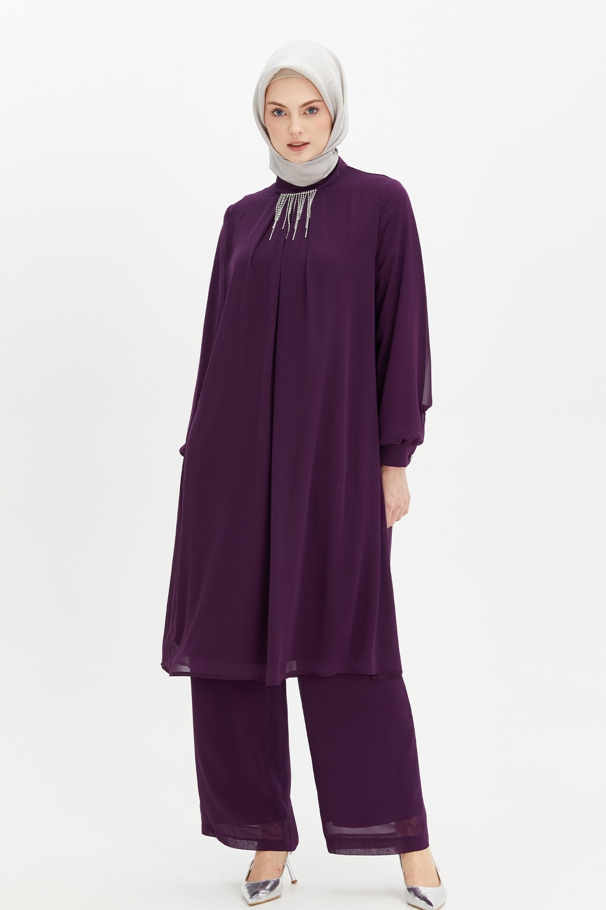 The Party Set with Hanging Stones is an elegant and comfortable outfit, perfect for special occasions. The combination of the stylish tunic and matching trousers gives your look a refined touch, while the comfortable cut allows for freedom of movement. Thanks to the modern design and subtle details, this set is both chic and wearable for longer events.
