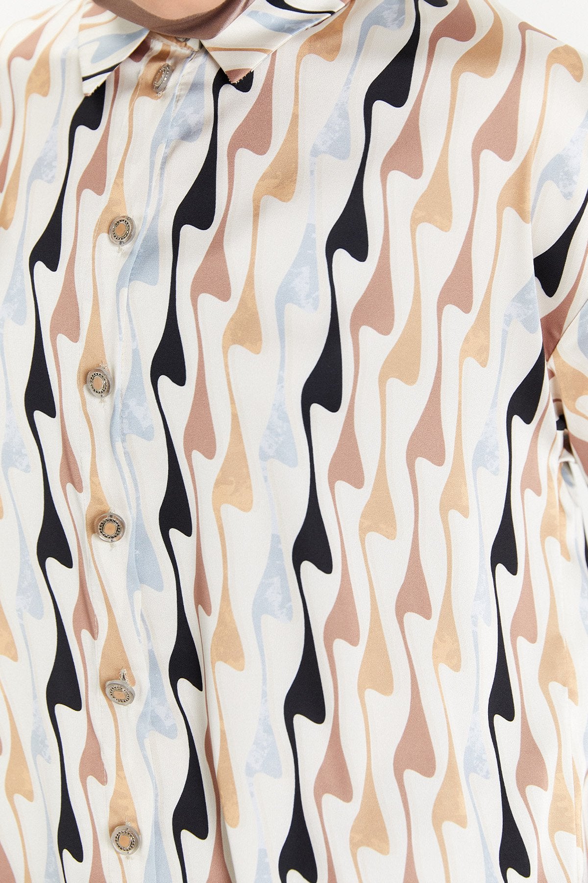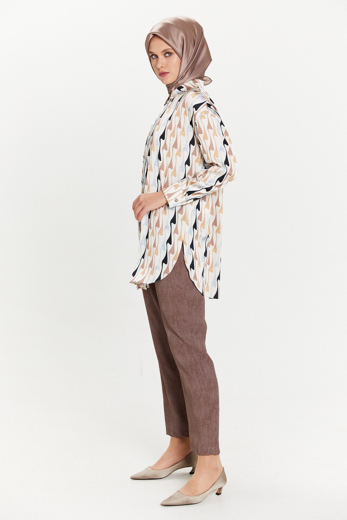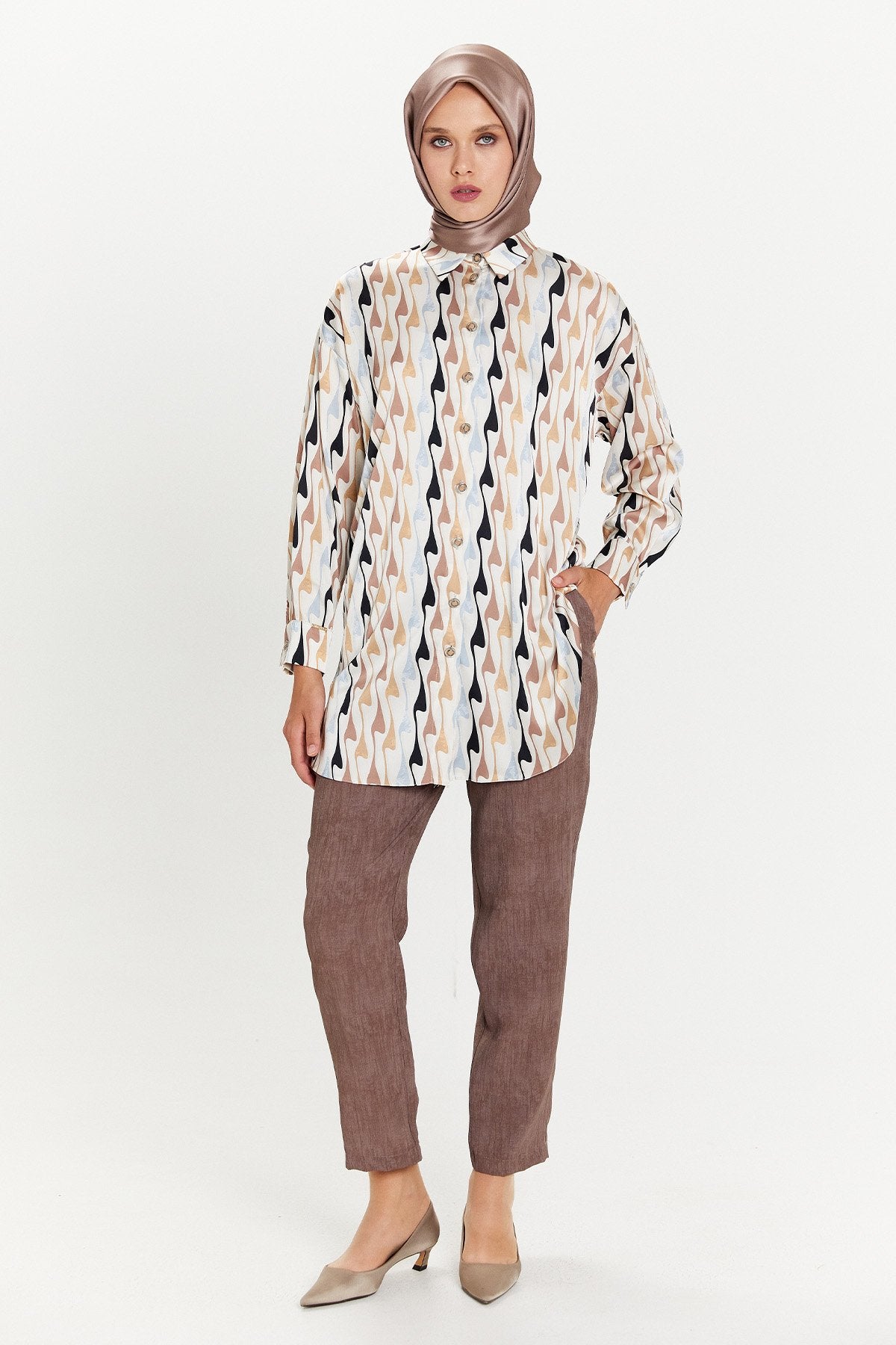 De Gedessineerde Fluweel Tuniek combineert comfort en elegantie dankzij de lichte en verfijnde stof, ideaal voor zowel dagelijkse als speciale gelegenheden. De tuniek heeft een relaxte pasvorm die bewegingsvrijheid biedt en een stijlvolle uitstraling geeft.