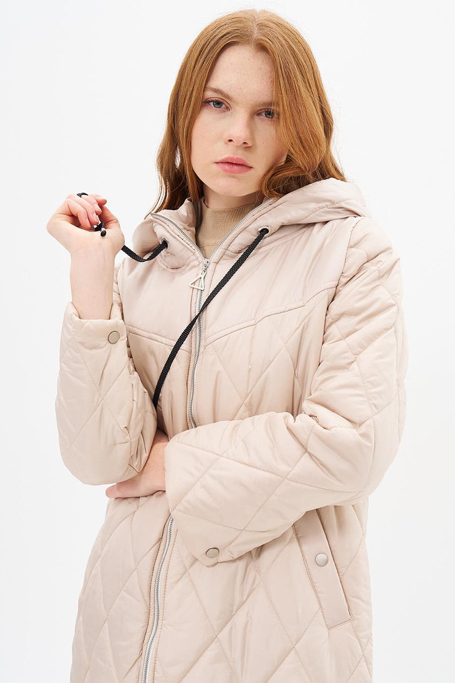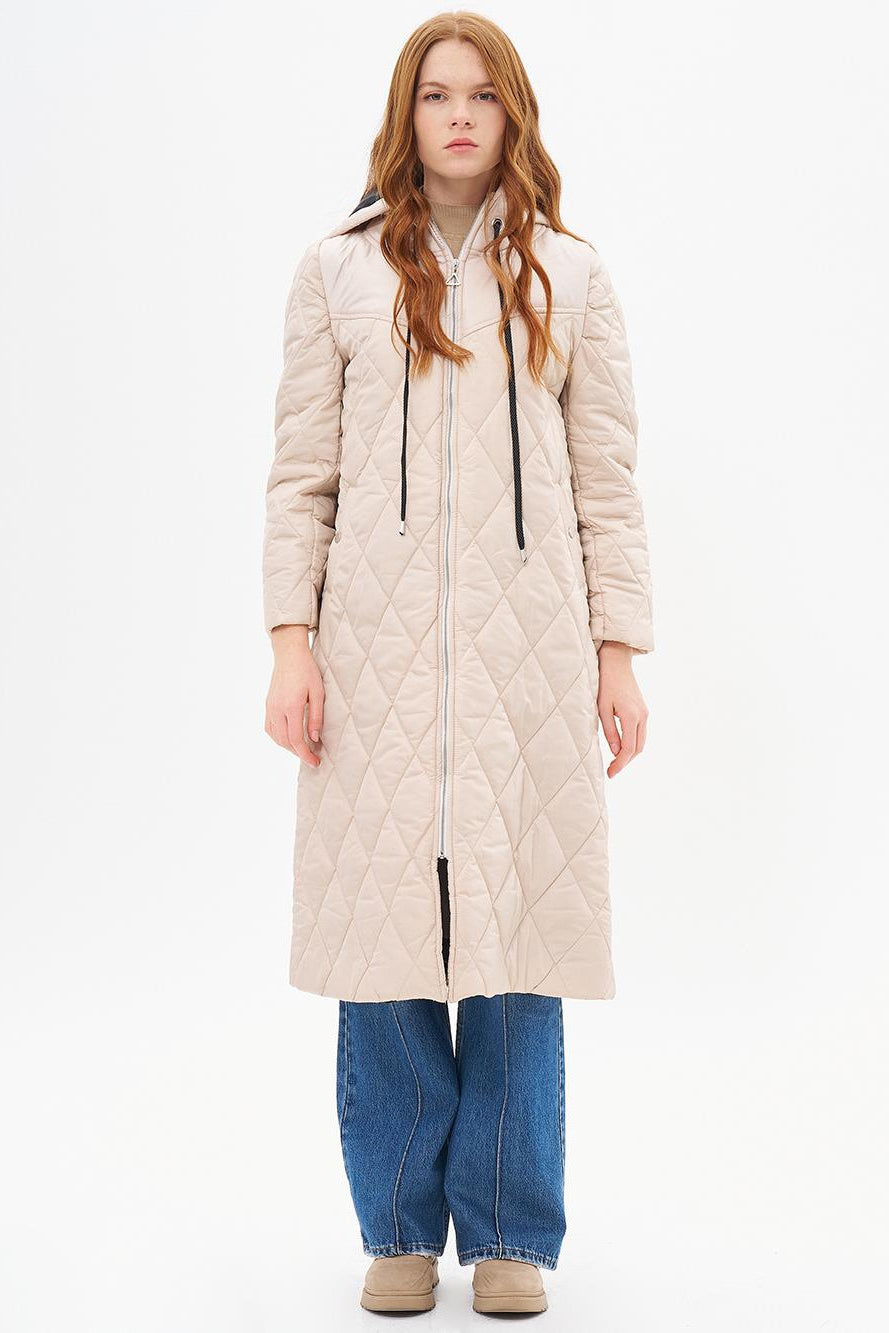 Gewatteerde Jas met Capuchon en Ruitvormige Stiksels