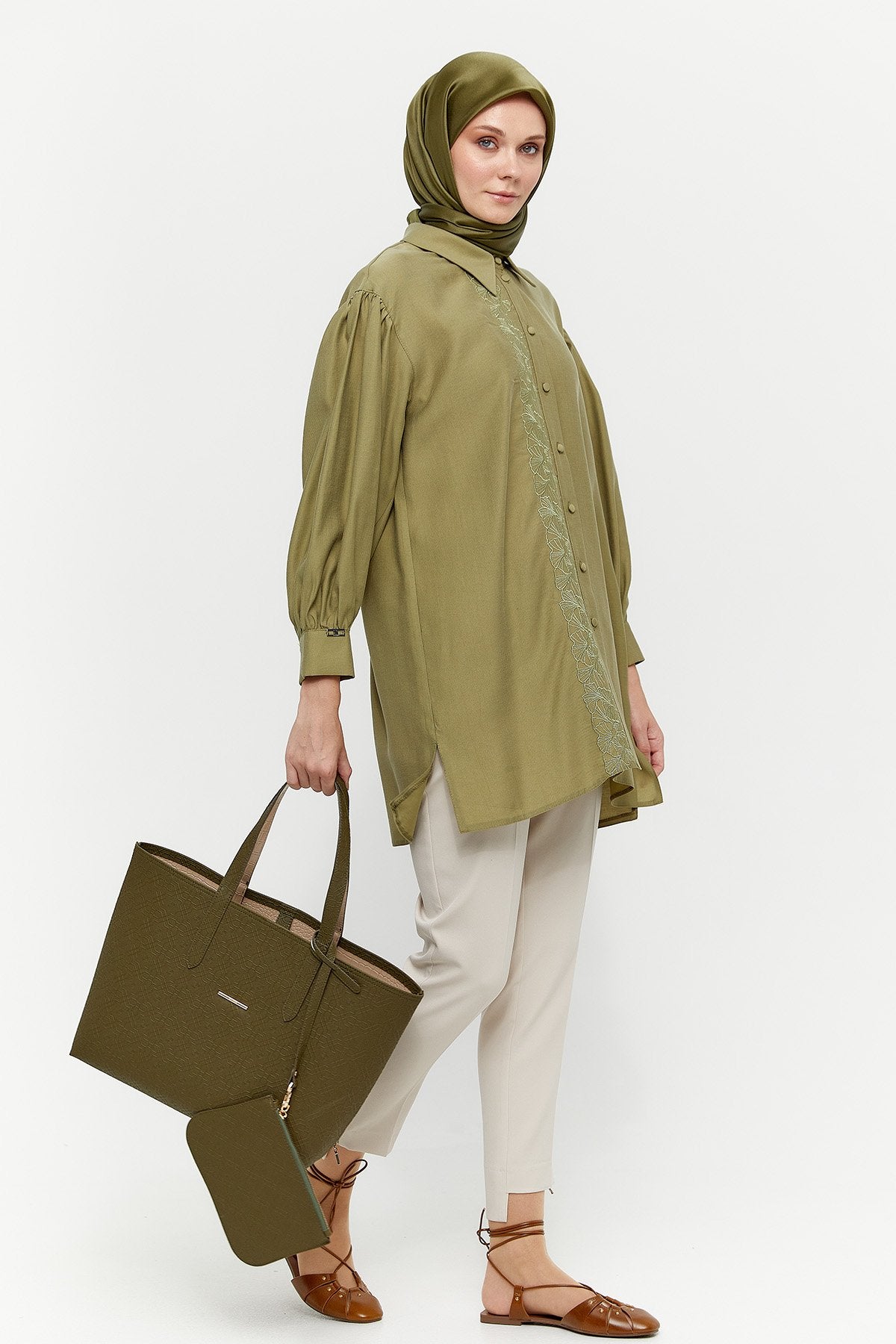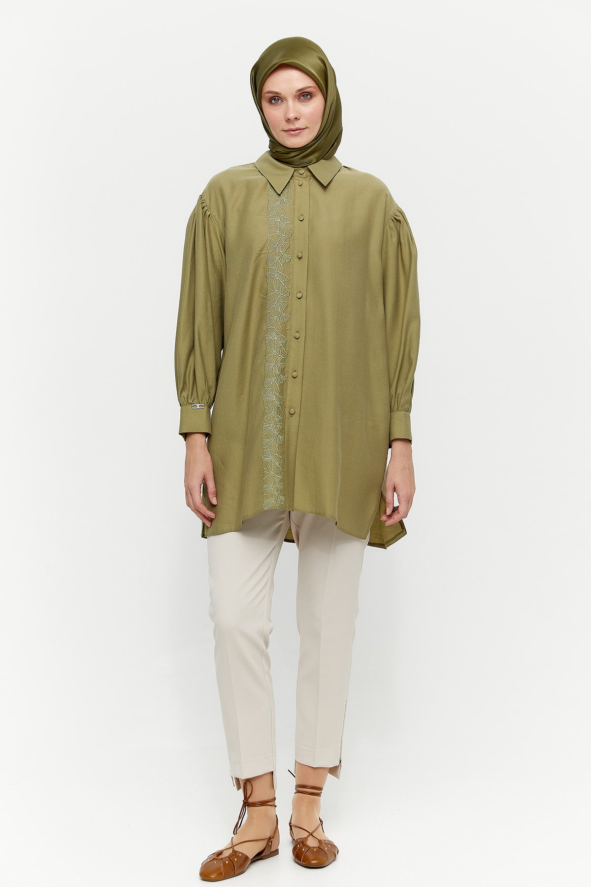 De Tuniek met Geborduurd Dessin biedt comfort dankzij de knoopsluiting aan de voorkant en is ideaal voor zowel dagelijkse als kantoorlooks. Het borduursel geeft een stijlvolle, verfijnde touch, terwijl de relaxte pasvorm zorgt voor bewegingsvrijheid.