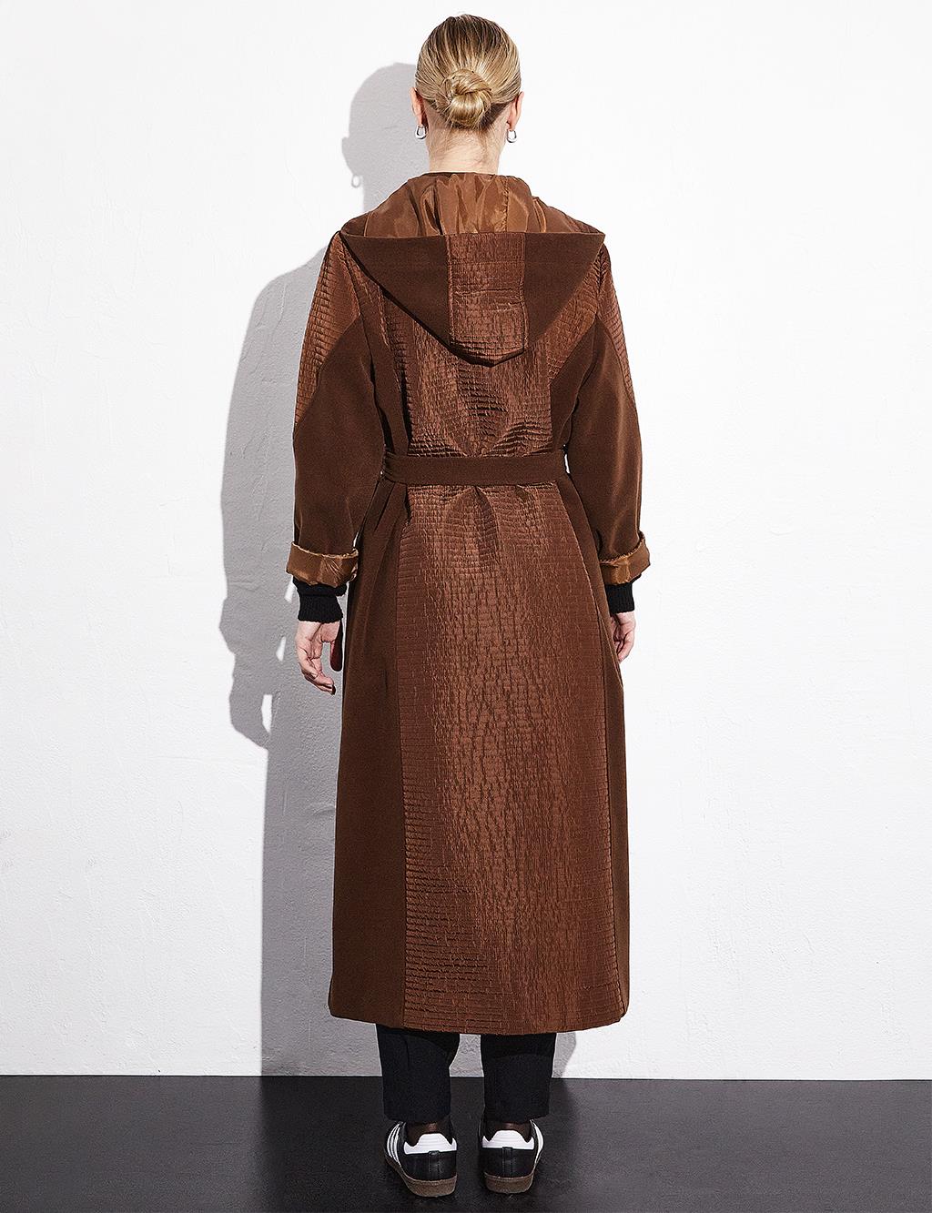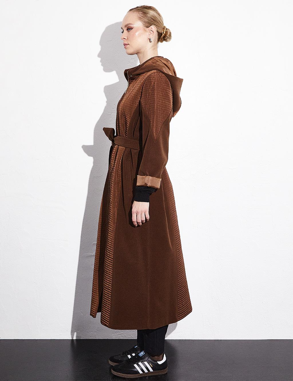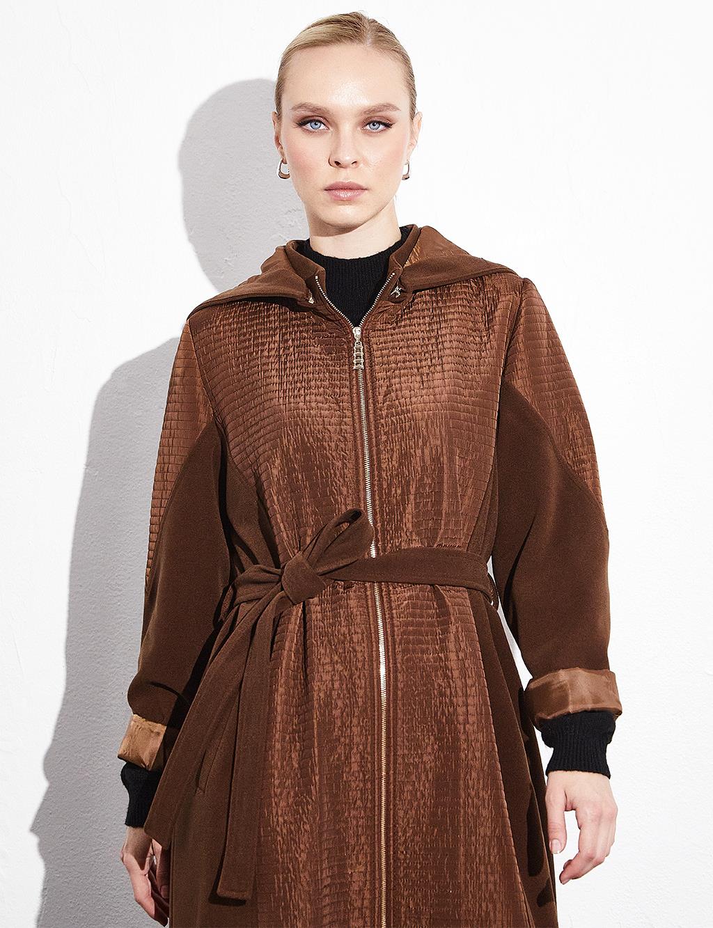 Çıkarılabilir Kapüşonlu Fermuarlı Mont Koyu Kahverengi
